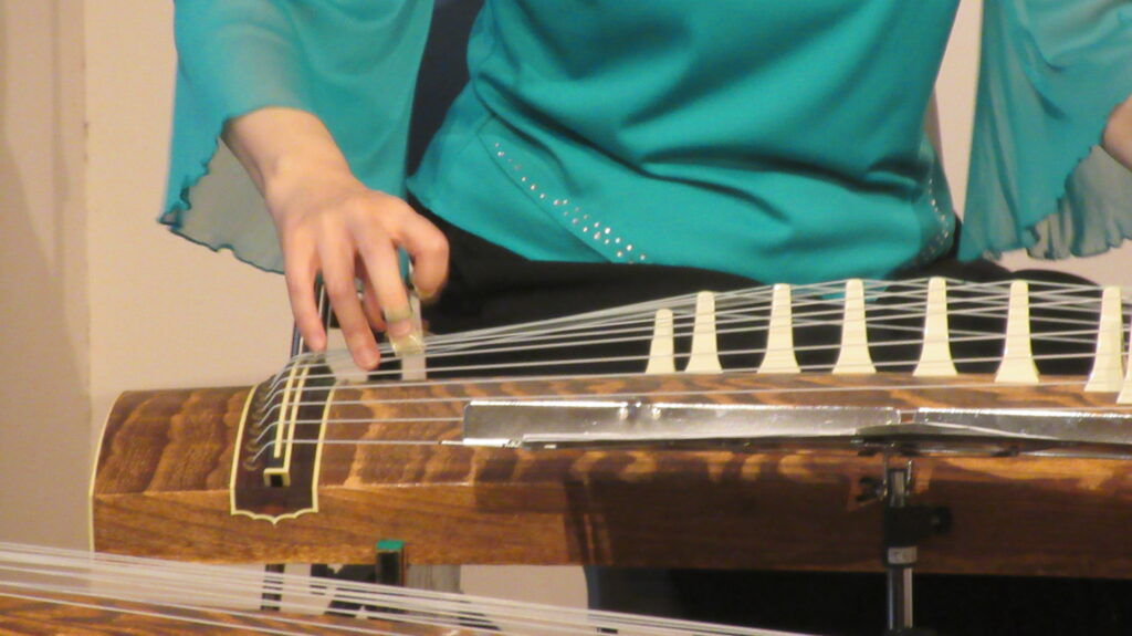前半部分は、師範であるお二人の息の合った演奏もさることながら、楽器の成り立ちや奏法についても実演を交え分かりやすく説明してくださいました。