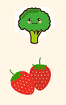 ・ビタミンC:みかん、いちご、ブロッコリー、ピーマン